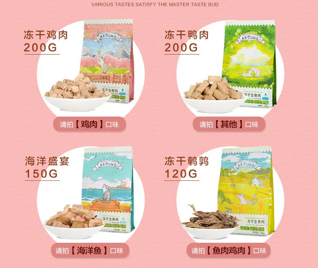 而在价格上,爱立方的冻干也更具性价比。以某宝的数据来对比,K9的320g鸡肉冻干价格为258元,而爱立方的200g鸡肉冻干108元。权衡二者的配方和价格,爱立方的性价比显然更高了。