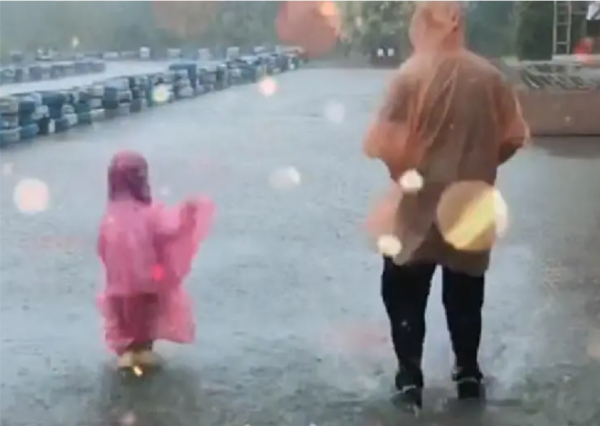 在这里,小编想要问大家下雨天特地去外面淋雨踩水这样的事情,应该很少人会去做,并且心里多少也会有一些蠢蠢欲动的想法吧?我们家的爸爸就带着孩子去做过这样的事情,那时候小孩才四岁不到,就被他爸带着去感受了一次淋雨的快乐。